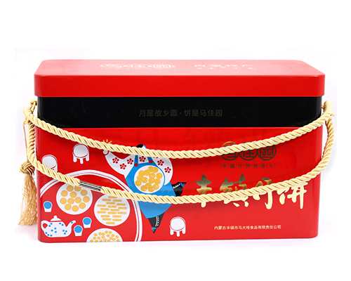 此款創(chuàng)意手提月餅鐵罐,馬口鐵月餅罐,中秋月餅鐵罐其制作材質(zhì)采用的0.25mm鍍錫馬口鐵制成,具有優(yōu)異的密封性、耐蝕性等,具備強(qiáng)烈的金屬光澤質(zhì)感。